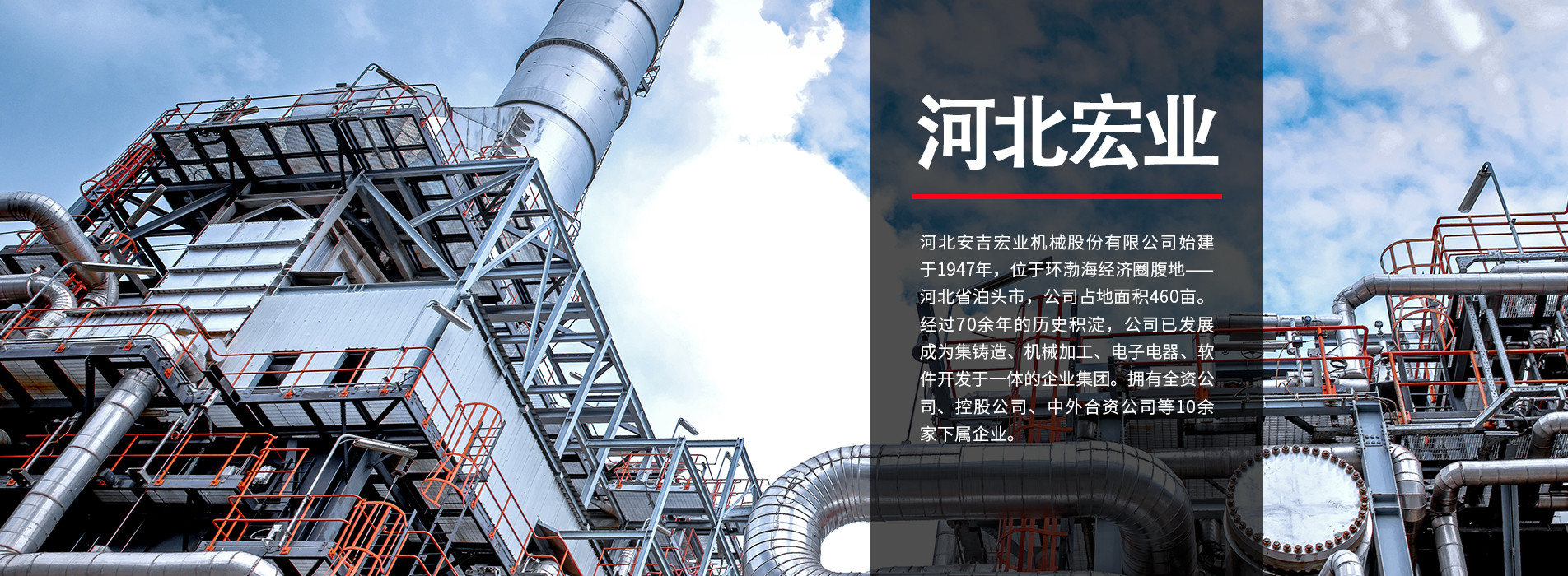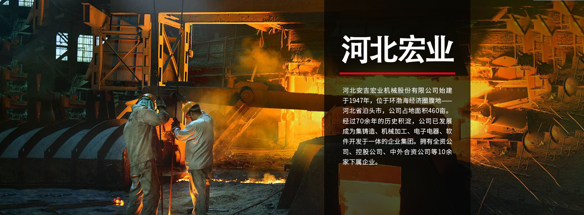 河北安吉宏業機械股份有限公司始建于1947年,位于環渤海經濟圈腹地---河北省泊頭市,公司占地面積460畝。經過70余年的歷史積淀,公司已發展成為集鑄造、機械加工、電子電器、軟件開發于一體的大型企業集團。擁有全資公司、控股公司、中外合資公司等10余家下屬企業。擁有一家省級技術研究中心,并在上海、天津、滄州設立了三個研發中心。擁有一支包括教授級高級工程師、博士、碩士、本科生在內的多學科、專業齊全的機電結合型技術團隊。現有產品涉及汽車零部件、流體機械、精加工鑄造領域。